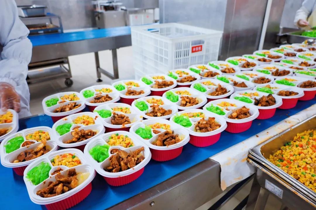 饭菜加工好后,通过真空冷却机快速降温,使中心温度降至0℃至8℃,并限时完成分装,然后接受金属探测仪检测,一旦检测出异物,仪器会自动报警,把好最后一道关。