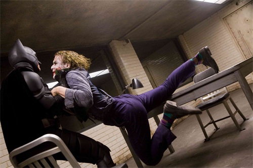 所以我们看小丑和蝙蝠侠竞争的时候,他并不是要置蝙蝠侠于死地,他而是一直在试探蝙蝠侠的底线,他最想要的是看到蝙蝠侠的堕落。的确想打败一个人并不是为了击垮他的肉体,而是要击碎一个人的灵魂。在哥谭市,蝙蝠侠一直致力于正义的维护,而小丑的努力,则是为了对道德体系、公众秩序的破坏。