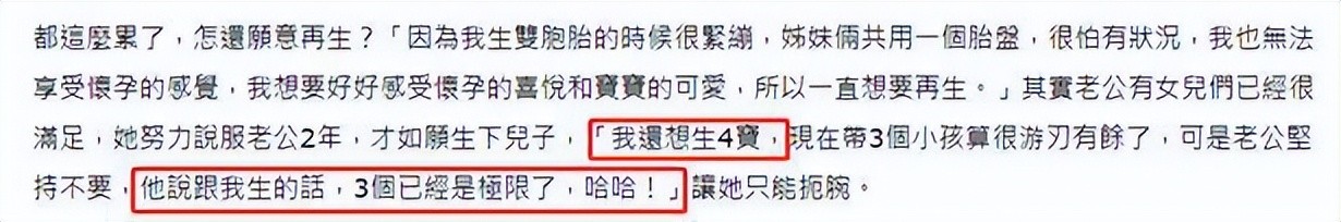 就这样她还想要再生一个,不过心疼她的丈夫拒绝了。
