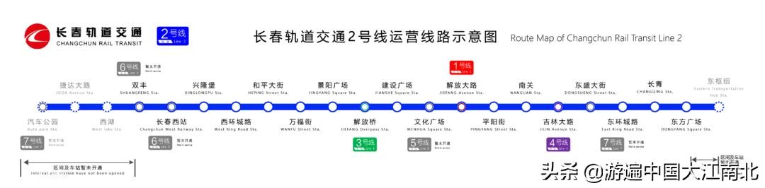 长春轨道交通2号线,呈东西走向,东起东方广场站,西止于双丰站,运营于长春市绿园区、朝阳区、南关区、二道区、经济开发区等地。