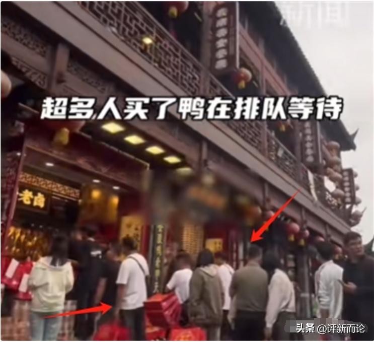 5月30日 , 一名热心网红博主来到南京夫子庙品尝当地特色小吃。在人潮涌动的景区,一家卖老南京盐水鸭的店铺尤为醒目,门口排起了长长的队伍,生意红火得不得了。