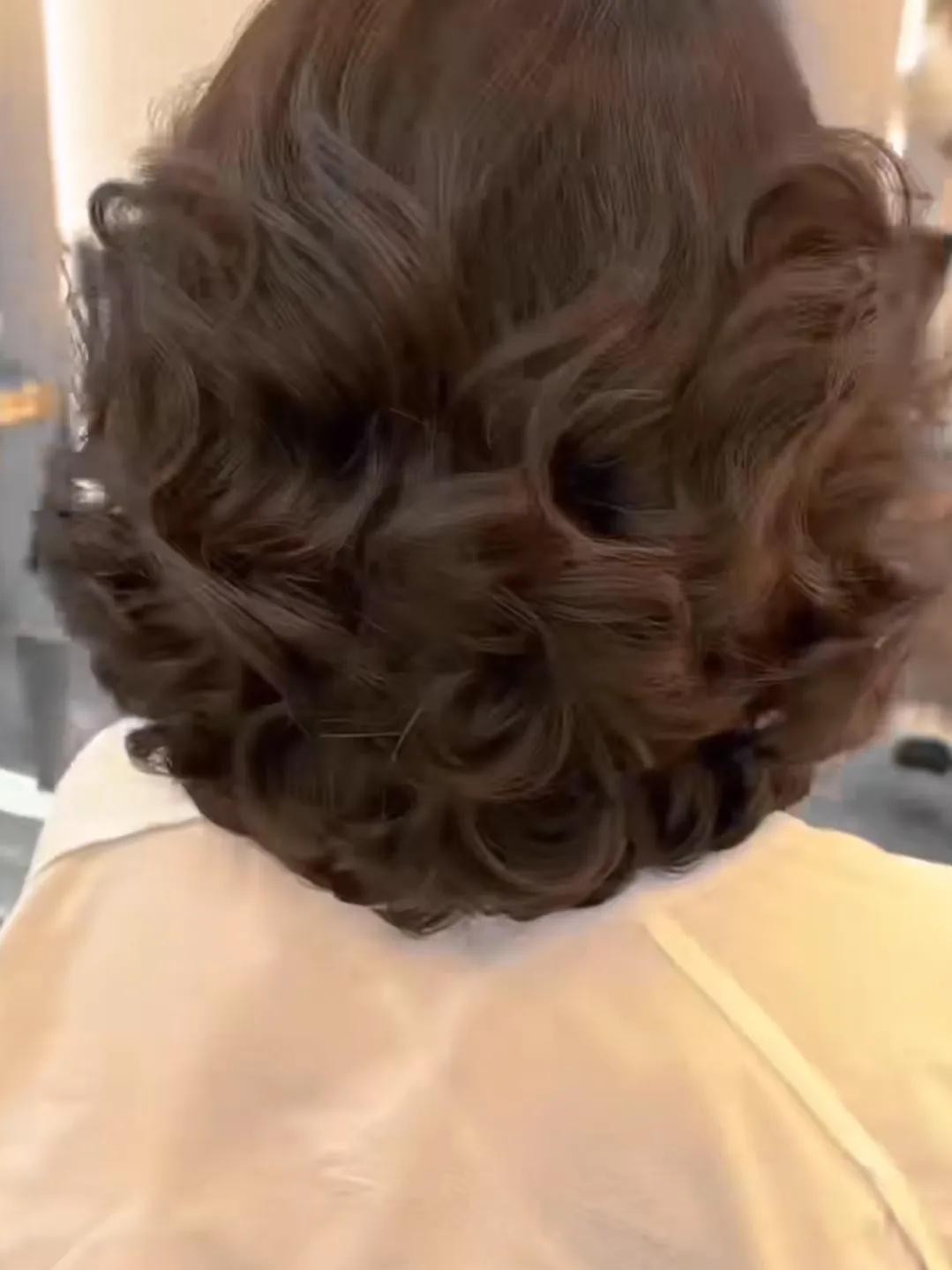 这款外翻、富有弹性卷发需要热烫、然后在家用缠绕的方式慢慢吹干就能达到这种效果!
