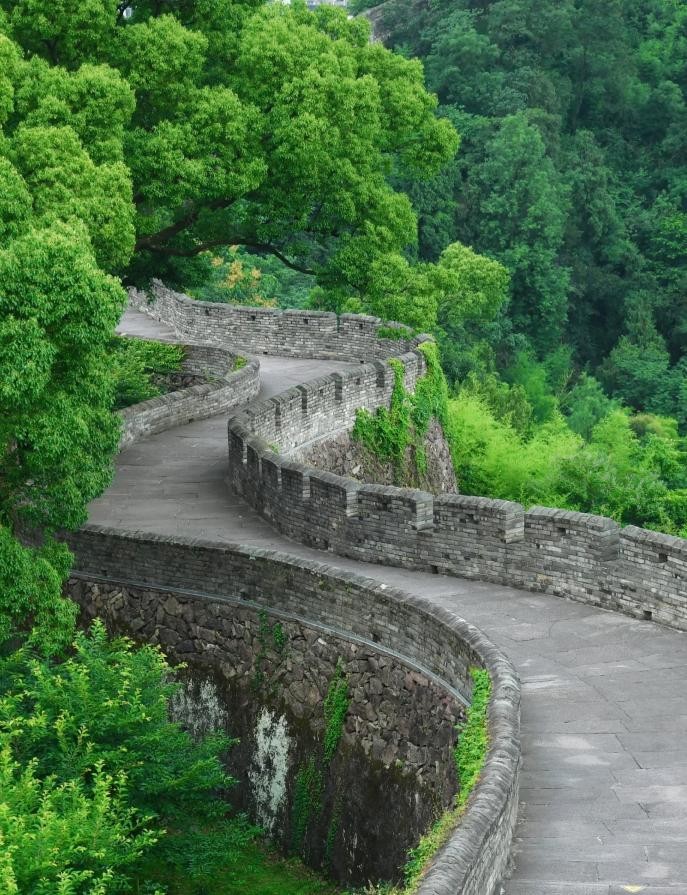 这里以江南长城而闻名,城墙沿江而起,依山而筑,雄伟秀丽。