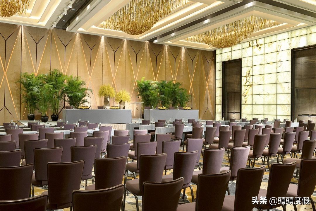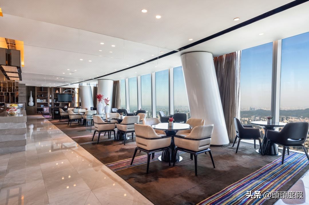 酒店大堂被<建筑文摘>评为全球20佳酒店大堂之一,是拍摄婚纱照的绝佳场所。在酒店的无柱式宴会厅举行盛大婚礼,或者在位于99层可俯瞰城市美景的私人宴会厅举办更私密的独一无二的庆典,酒店都会为你提供完美的方案。酒店共有2个会议厅,为举办商务会议和社交活动提供了格调非凡的场地。位于99层的行政贵宾酒廊,让你和同事与伙伴的思维,跳跃出办公室直冲云霄。