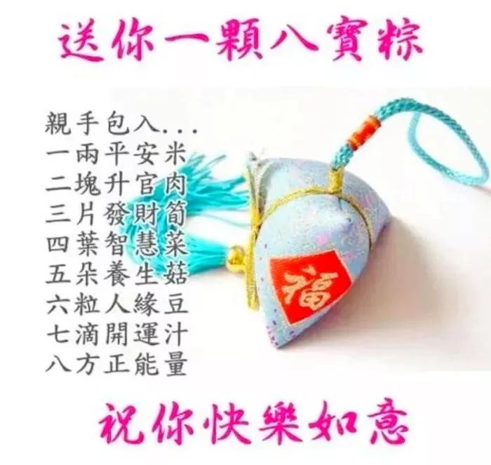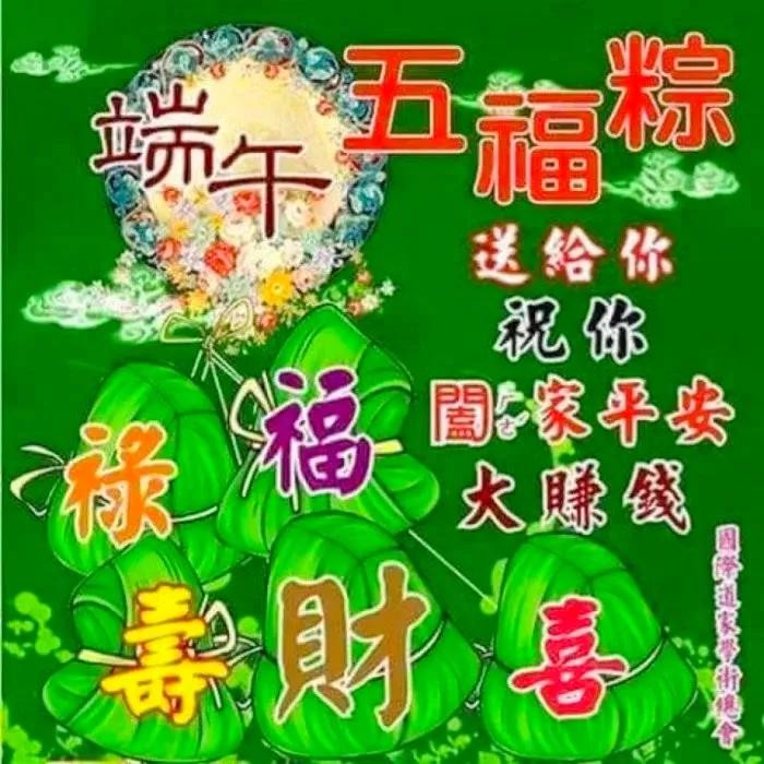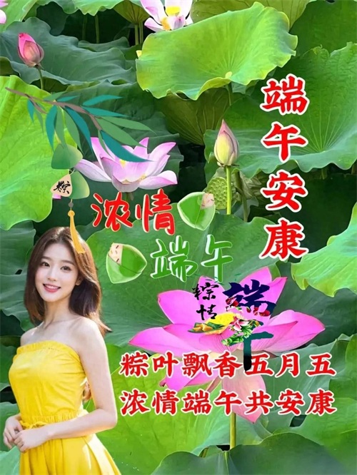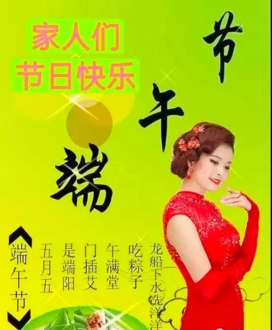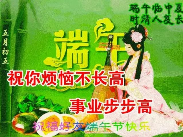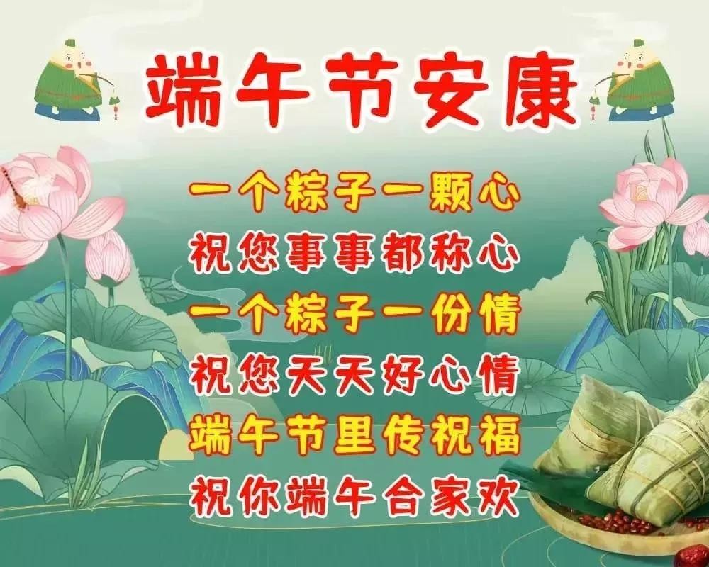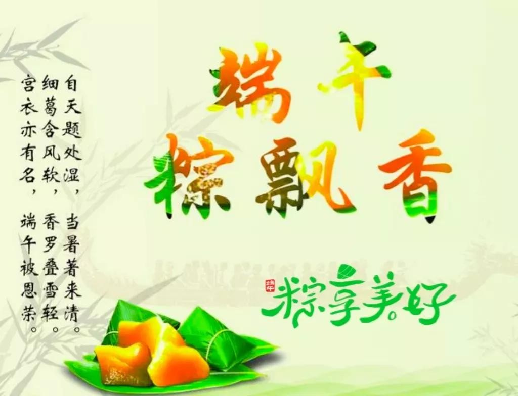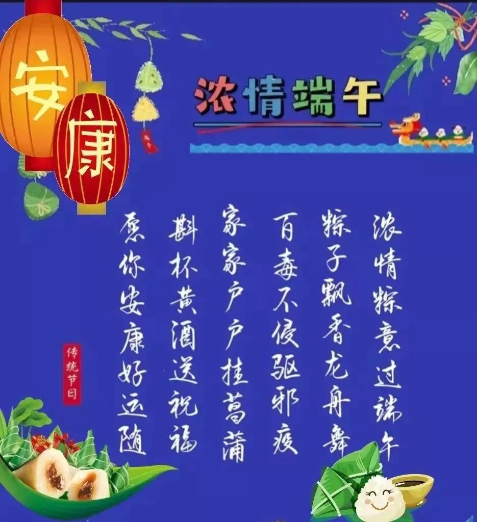 艾叶青,雄黄黄,淡淡幽香迎端阳;挂菖蒲,佩香囊,重温旧俗喜洋洋;赛龙舟,摆渡忙,一腔豪情满春江;问候暖,情意长,愿你如意又吉祥。