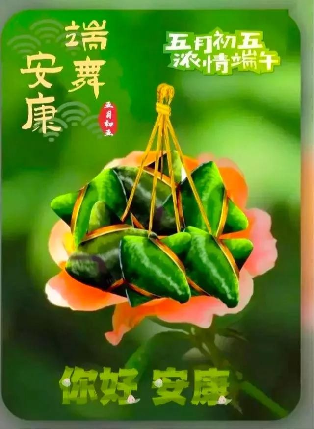 桃儿红,杏儿黄,五月初五是端阳;五彩线,荷包香,系在身上保安康;粽子香,包五粮,剥个粽子裹上糖,幸福生活万年长,祝你端午节安康