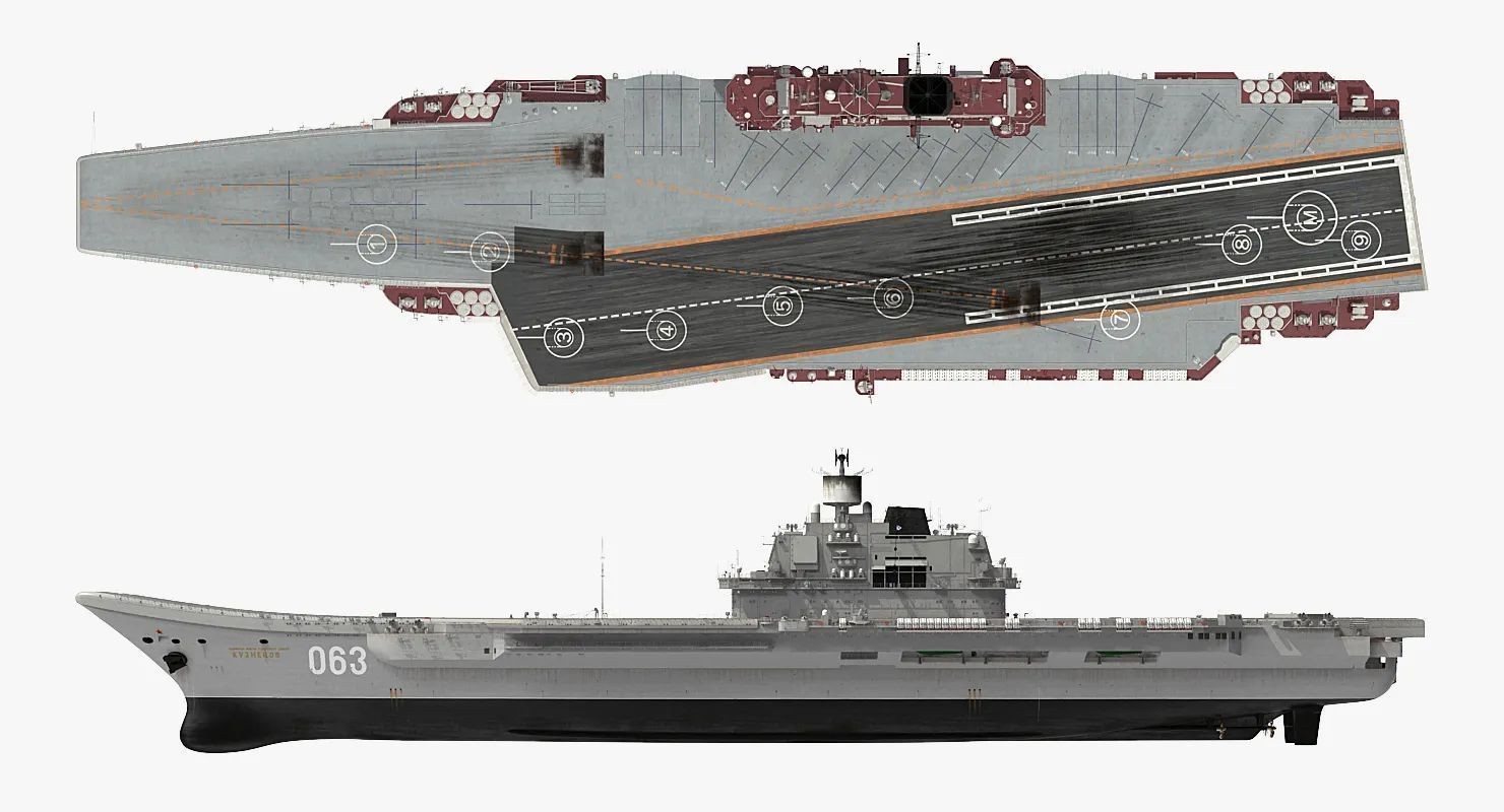 库兹涅佐夫号航空母舰,舷号:063,是苏联/俄罗斯海军第三代1143.5型常规动力航空母舰的首舰,是苏联和俄罗斯第一艘真正意义上的航母,也是俄罗斯海军唯一一艘在役的航母,隶属于北方舰队,命名库兹涅佐夫是为了纪念二战苏联红海军司令员。