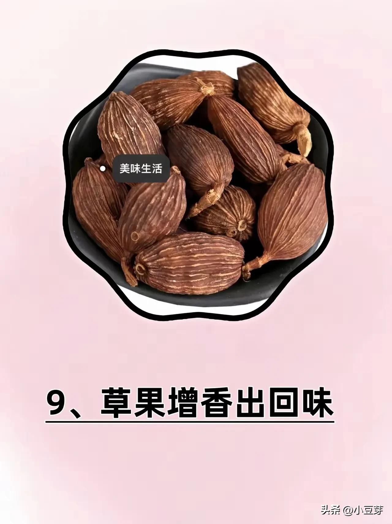 • 作用:香气浓厚,微苦,主要作用是除腥去膻、脱臭除异味。常用于卤水、香肠、腌肉中,尤其对于鱼腥和羊肉膻味特别有效。