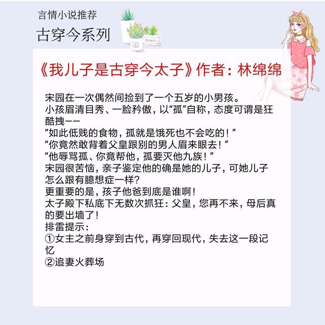 男主竟然也跟过来了,主线就是围绕古人穿到现代的新鲜事迹及解开男女主的误会,这一部分咕咕太可爱了!但我没想到的是父子俩还要回到古代去,这里赚了我一波眼泪。男女主终于冰释前嫌,理解了各自的立场也明白了爱意不变。最后小太子还是回了古代承担起了自己的责任,真是棒棒哒,男主也回去了,然而男主阴险狡诈人设不崩,为儿子铺好路,准备好一切,能够承担起天下,又跑回现代找女主了。本文文风轻松幽默,文章情节张弛有度,人物互动温馨自然,值得一读。5本古穿今甜文,文风轻松幽默,情节张弛有度,互动温馨自然