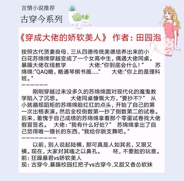大家好,我是涵涵,今天推荐「推文」5本古穿今甜文,强推《穿成大佬的娇软美人》,轻松沙雕
