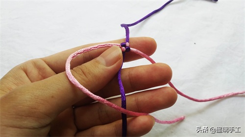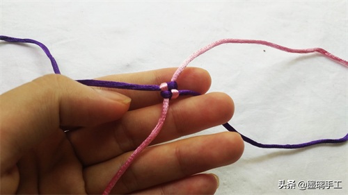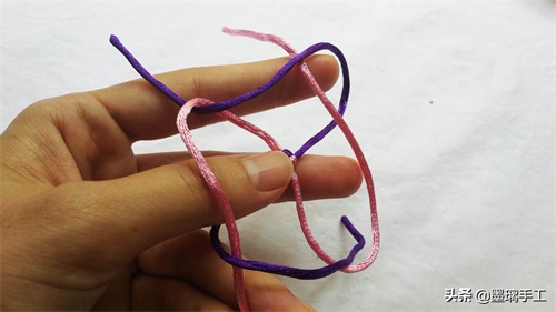1.拿2根线,分别是紫色和粉色。粉色压在紫色的上面,如图: