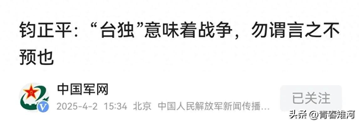 中国军网发布署名均正平的文章,对台独发出“勿谓言之不预”的警告!“勿谓言之不预也”是中文语境中极具分量的外交警告用语,意为“不要说没有事先警告过你”,通常被视为中国采取重大行动前的最后通牒。可以说这是对湾湾台独政权最严厉的措辞,要知道新中国历史上总共才使用三次。