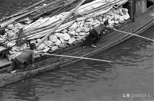 码头上停满了三板船,工人们每天重复着卸船装船的苦力活,只为了在那个动乱的年代能有个温饱