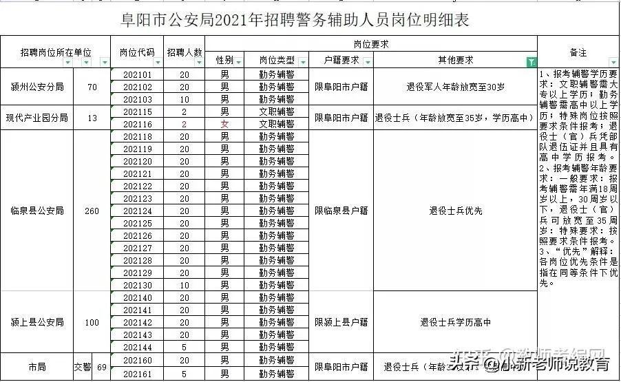 退伍军人招聘最多的岗位应该就是辅警招聘了。2021阜阳市公安机关警务辅助人员招聘招919人。其中有关退役士兵可招考岗位512人。