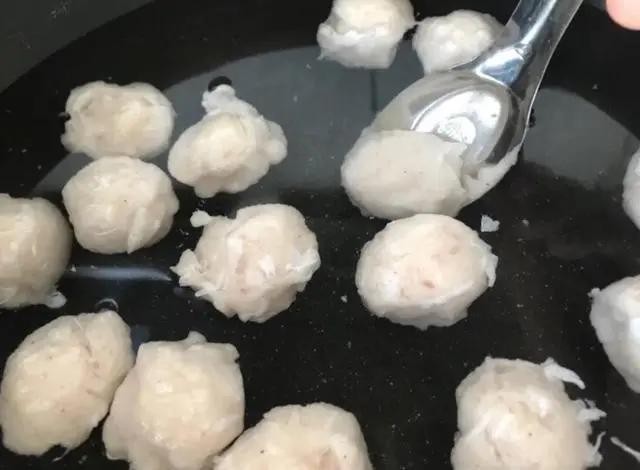 第四步:丸子全部下锅之后,凉水开始煮,煮沸,煮至鱼丸变大成熟就可以关火出锅了,过一下凉白开,口感更Q弹。