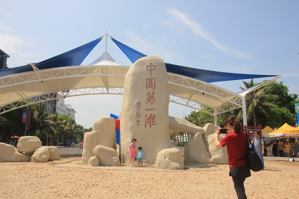 到达中国第一滩景点,首先看到的是一块巨石刻有“中国第一滩”的文字,提名人李德生,是原中共中央副主席,中央政治局常委。