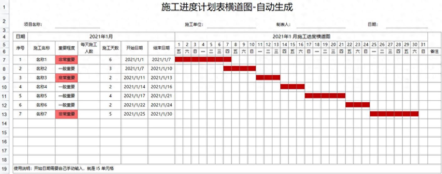 别再手动绘制横道图了!这款全自动生成软件完全够用,输入数据5s出图,适用于各种工程,只需要输入工程开始及结束时间,立即自动生成,施工进度一目了然,实时把握任务的进度,发现问题,及时调整与修改,操作起来也非常简单,实用性很强。