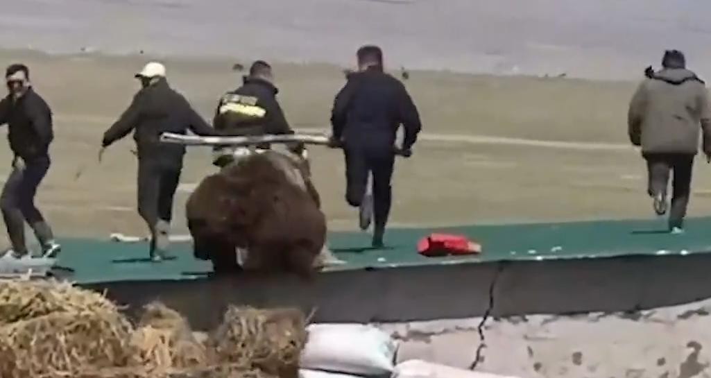 西藏那曲比如县萨普旅游景区,游客投喂藏马熊常见。近距离拍摄,配文逗熊,投喂苹果,半开车门合影。藏马熊是国家二级保护动物,生存环境严苛,攻击性强。游客行为危险且影响其生存。