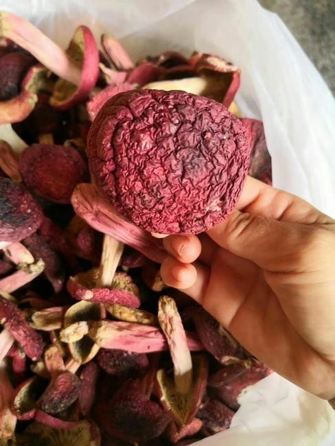 红菌,又名红椎菌,红菇,正红菇,真红菇。有人形象的称其为“鸡肉菌”,意思是用红菌与鸡肉一块烹调是理想的美味佳肴。野生红香菌有比其它香菇类具有更高的蛋白质、氨基酸、丰富的矿物质和维生素及多种药用成分。妇女分娩后身体虚弱,红香菌是最好补充营养,并具有预防肿瘤及提高人体免疫力功能作用。