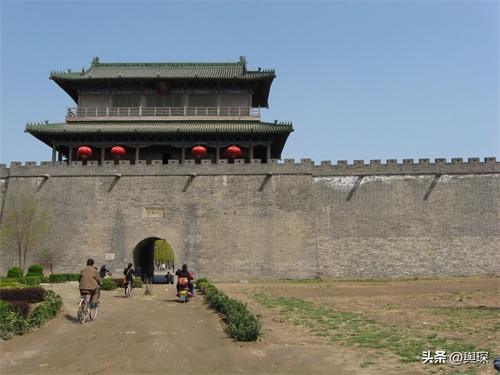 人们骑自行车通过南城门