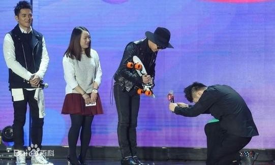 2013年韩国人气明星权志龙入围某盛典,而身为权志龙狂热粉丝的杜海涛现场求合影并以单膝下跪的方式为偶像颁奖。