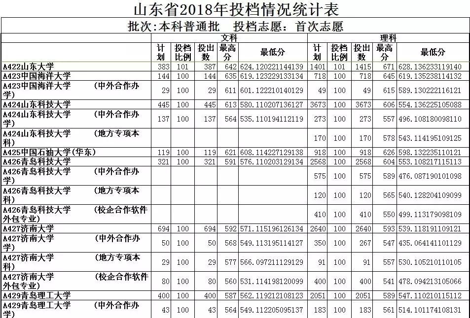 2018山东高考投档线公布!山大文624理628!山师文589理570!山财大文586理