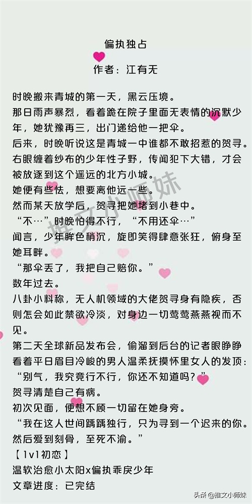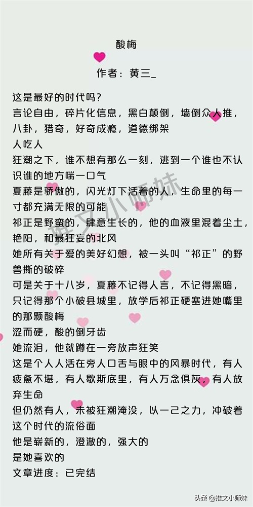 推文小师妹,每日推文,书荒关注我哦!