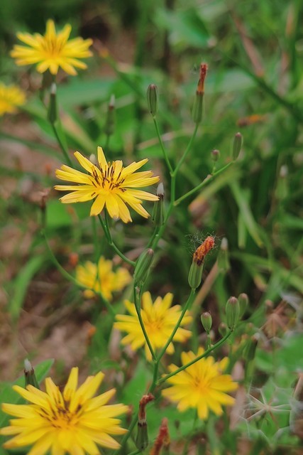 蒲公英的花是一根粗茎上只会顶着一朵小黄花;而黄鹌菜则是一条细细长长的小杆上开着一堆的小黄菊。
