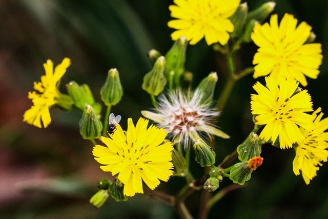黄鹌菜和蒲公英的外形很像,它们的花朵最后都会变成一个小绒球。虽然它们很相似,但只要你仔细观察,就会发现它们是不一样的。