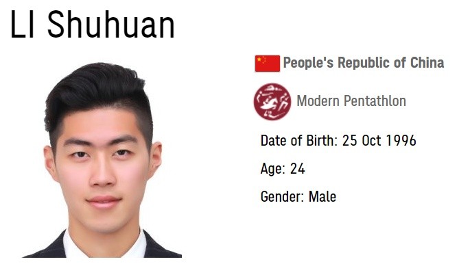 来自上海的现代五项运动员李澍寰的名字,大概是最难写的了。“澍”字有(shù)(zhù)两个读音,在这里读(shù),意为及时的雨。“寰”读( huán),意为广大的地域。毛主席在词《满江红·和郭沫若同志》中曾写道,“小小寰球,有几个苍蝇碰壁。嗡嗡叫,几声凄厉,几声抽泣。”