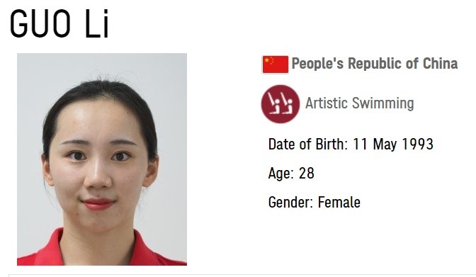 花样游泳队有位叫呙(guō)俐的老将,2010年就已经入选国家队,也参加过2016年的里约奥运会。
