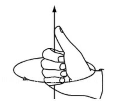 我们先来看看,真理元素为什么会得出1/c这样一个反常识的答案:因为电场的传播并不沿着导线。实际上,在这个30万公里长的电路中,灯泡多长时间会被点亮,涉及的是电磁场能量如何传递的问题。大家都知道,电荷周围会形成电场,比如一个电池,在它的外部,电场就从正电荷所在的正极指向负电荷所在的负极。电流周围则会产生磁场,其方向通过右手定则得出:大拇指指向电流方向,剩余四指的方向就是磁场方向。