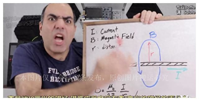 而只有离导线非常近的地方才会有电磁波,1米的距离显然已经检测不到什么电磁波了,根本没法点亮灯泡。关于这点,ElectroBOOM也抓狂地亮出数据:离导线10cm的磁场,磁感应强度可只有1毫米处的1%!
