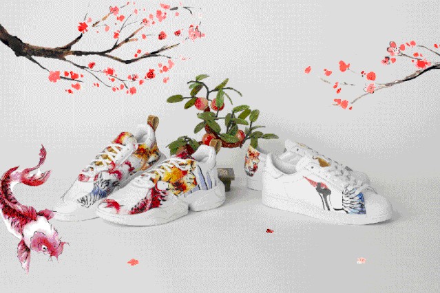 新春特别系列产品设计灵感取自于中国灵兽、中国花卉、中国十二章纹和中国传统图腾4大元素。阿迪汲取国粹,将牡丹、海棠、莲花、老虎、仙鹤、锦鲤等意象融汇,以体现新年主题。