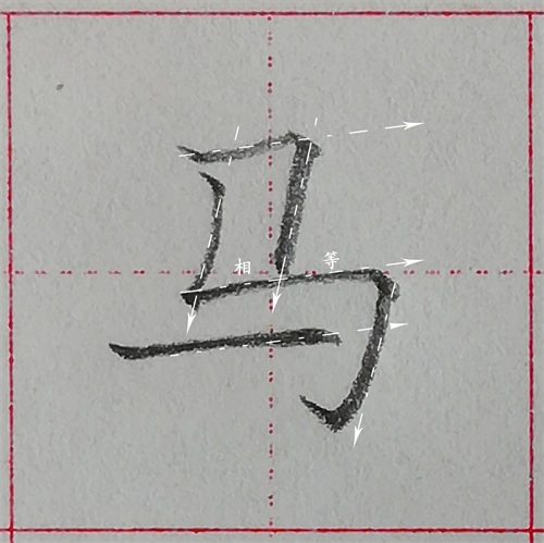 3、“马”的左上方笔画不封口,右侧横竖虚接封口