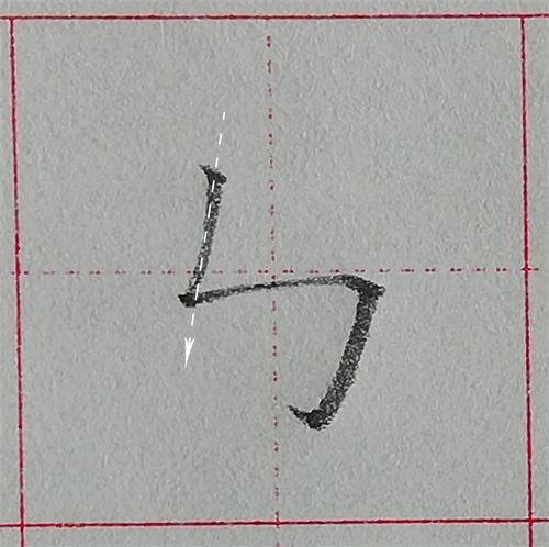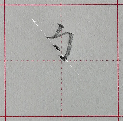第一笔撇,在上半格中间偏上一点,在竖中线起笔写短撇