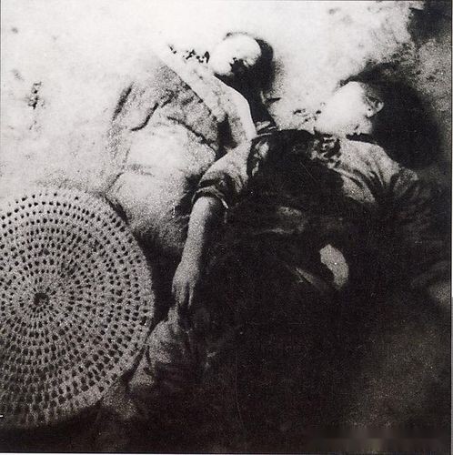 还有襁褓中的孩子在母亲的怀抱中被刺刀刺死,死状惨烈。