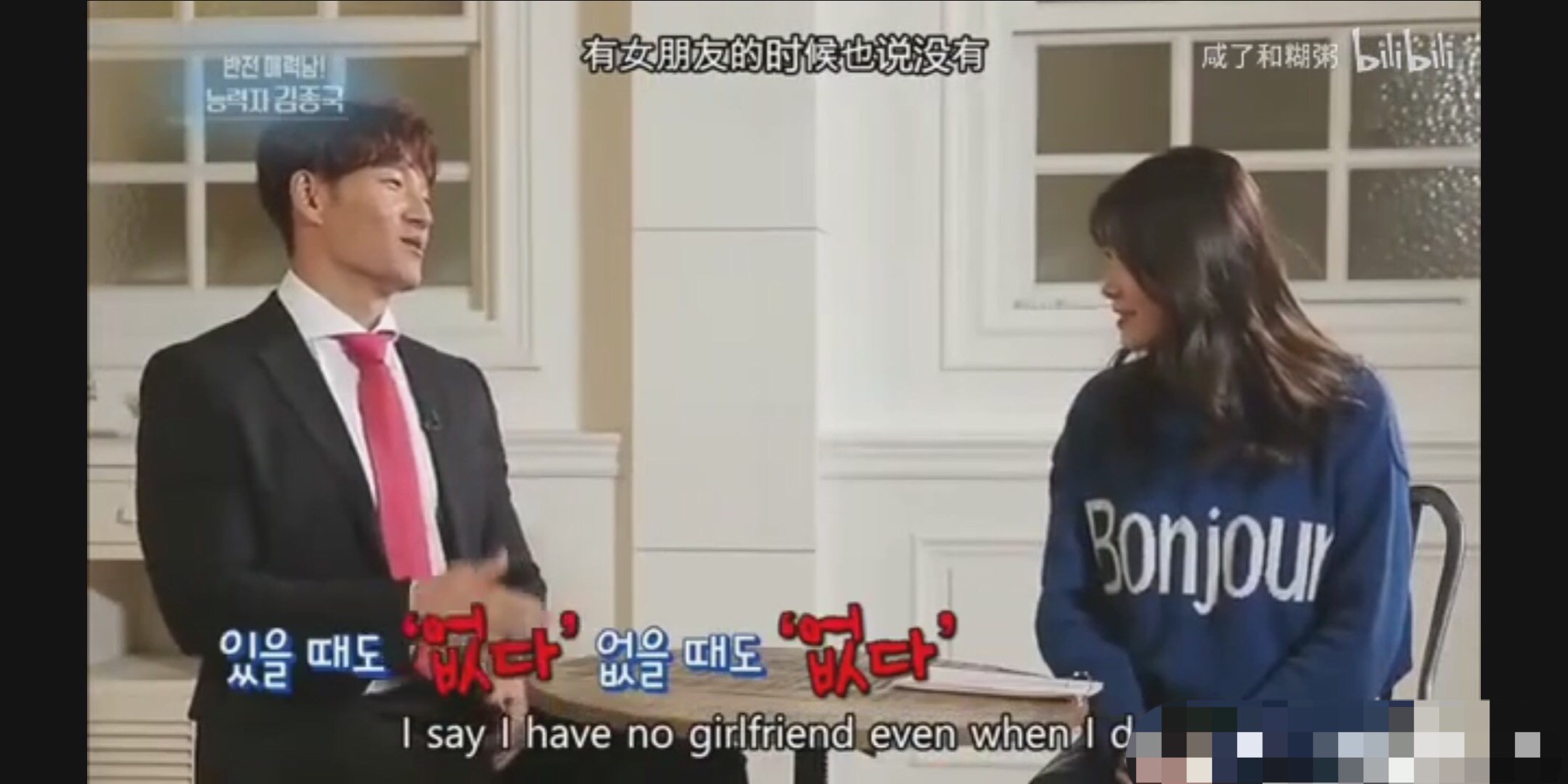 在后来成员们都去厨房做饭的时候只有她呆在沙发上和金钟国梁世灿聊天