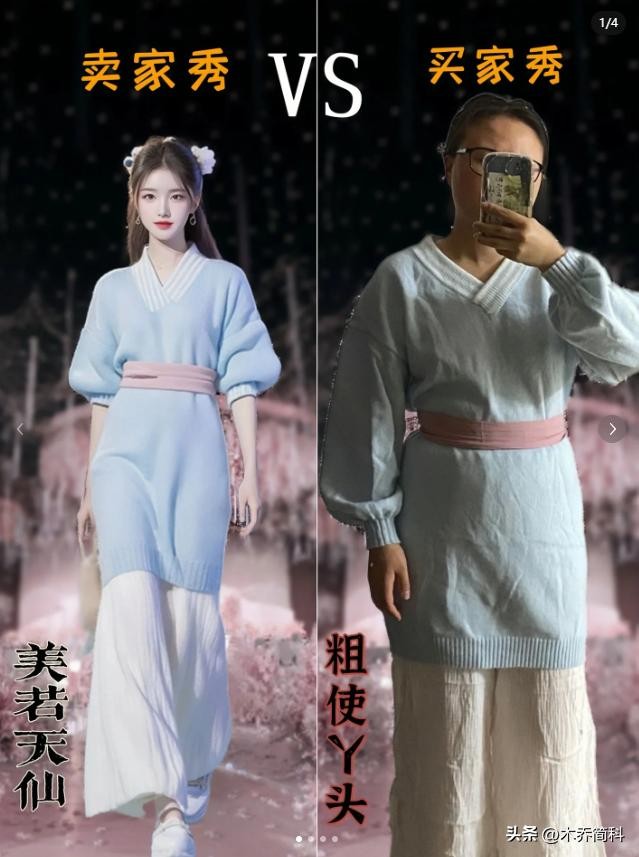 敢问这两件衣服是同一个设计吗?卖家穿上,贤淑又有气质,可买家穿上……大家自行脑补形容词吧。