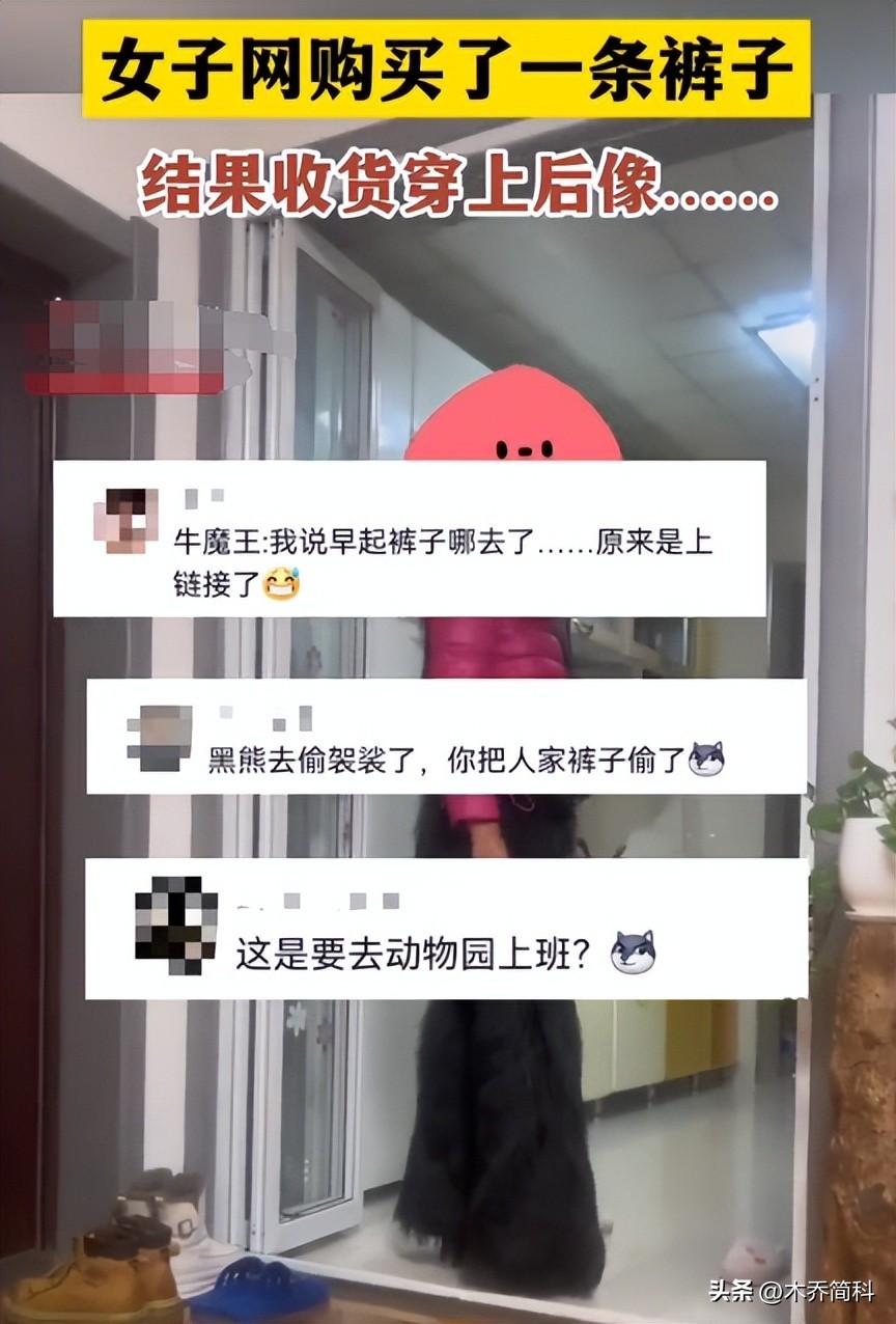 山雕小姐姐买的羊毛大衣已经够让人笑不活了,没想到还有买到“黑熊裤子”的。