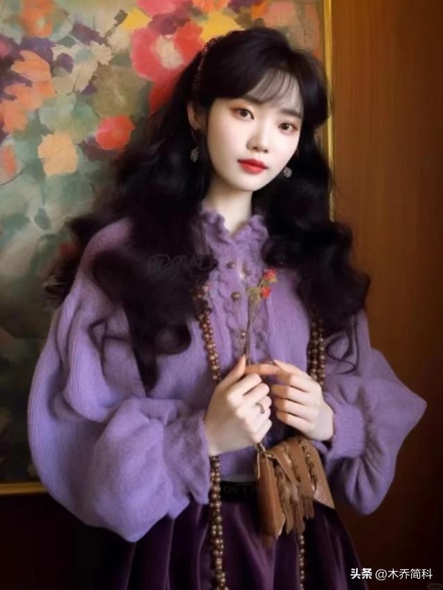 还有这件紫色毛衣,是不是复古又高贵,让人看了之后立马就有买的冲动?