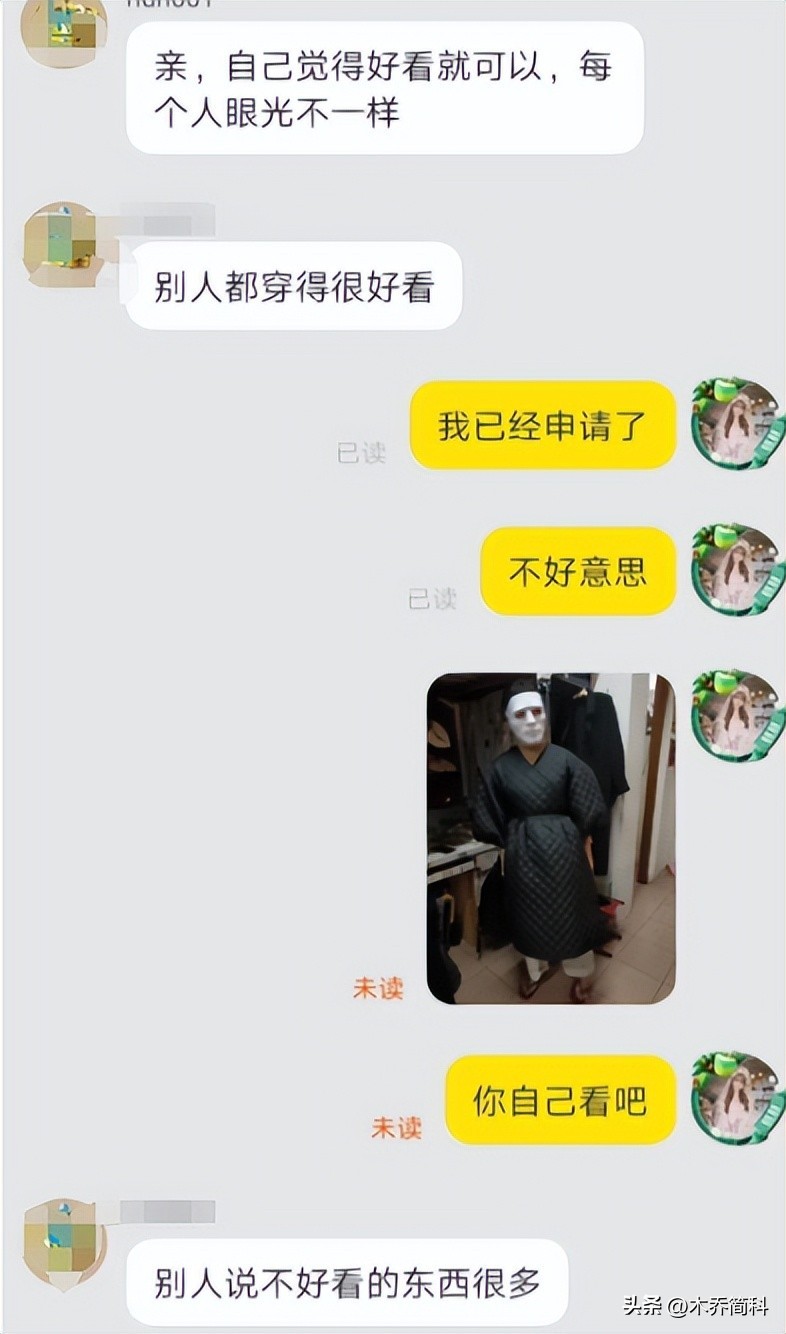 还有网友说:你这衣服再丑,好歹能穿上,你看我买的这件,那简直是给蛇精预备的啊。