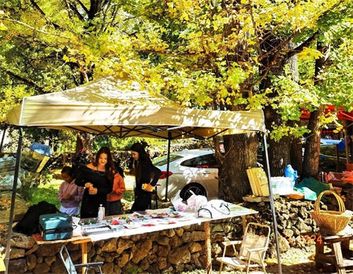 11:28时,车到距银杏村还有二里地的路口,有人拦住不让直接进入村子,想进去的话只能步行或者乘观光车。我们只能依指引拐向路边的临时停车场。