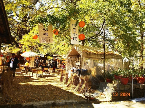 银杏村更像是大自然精心布置的一幅画卷,在晚秋的风之呢喃里,银杏叶在阳光下熠熠生辉,一片诗情画意。