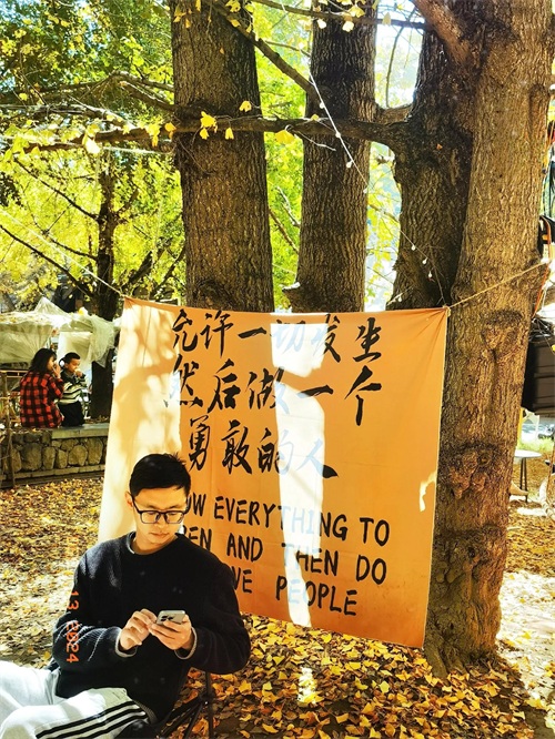 离开银杏村之前,再次回到银杏广场上,寻一处茂密枝干下的树荫坐下——