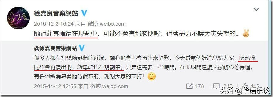 由此可见,虽然陈冠蒲在唱过那几首歌后就消失了,18年来没有任何消息,但他的歌声却没有被人忘记,大家一直在期盼他的归来。