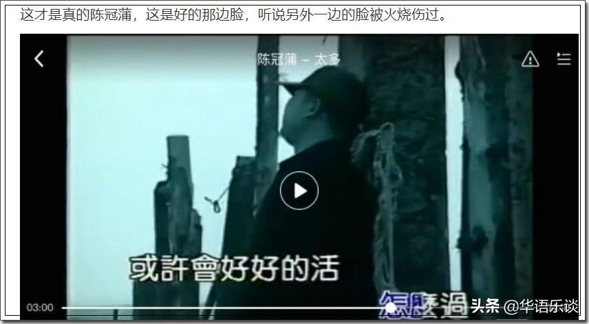 《太多》当时是电视剧《乌龙闯情关》的片尾曲,也是电视剧《穿越时空的爱恋》主题曲和《新蜀山剑侠传》片头曲,歌曲确实是风靡一时。但唱这首歌的歌手陈冠蒲,却一直很神秘,从未公开露面。