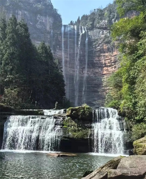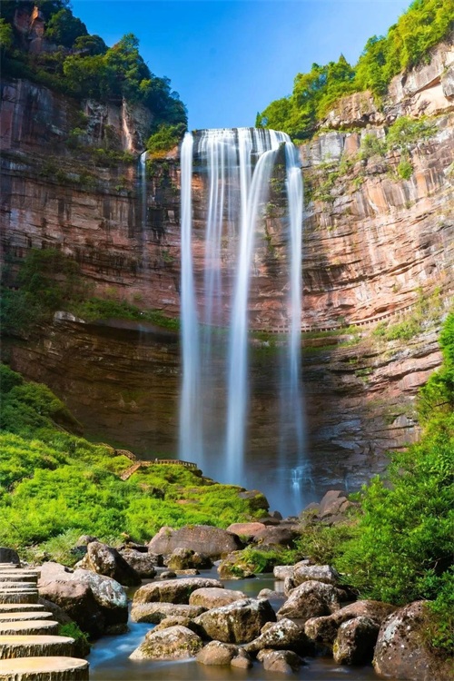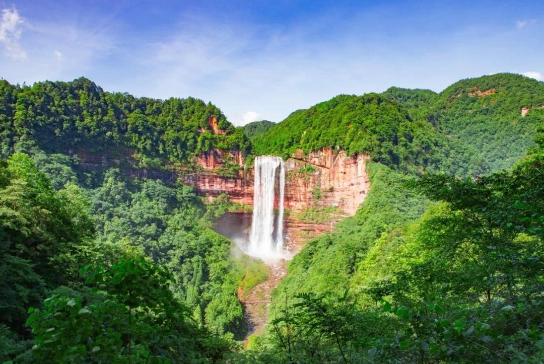 二、江津四面山景区:四面山以丹霞地貌著称,瀑布、湖泊、森林应有尽有。望乡台瀑布雄伟壮观,红枫林、爱情天梯等景点,让人陶醉于大自然的美丽画卷。