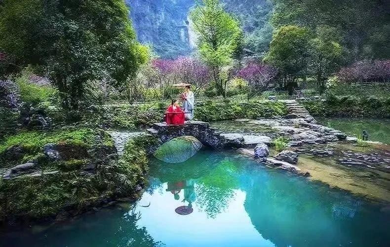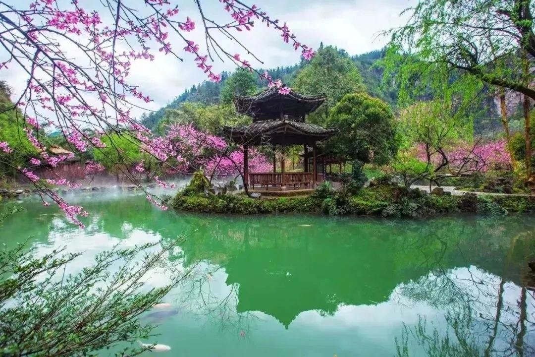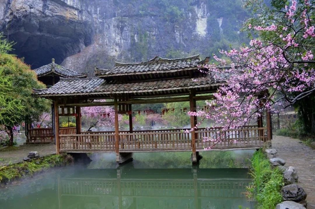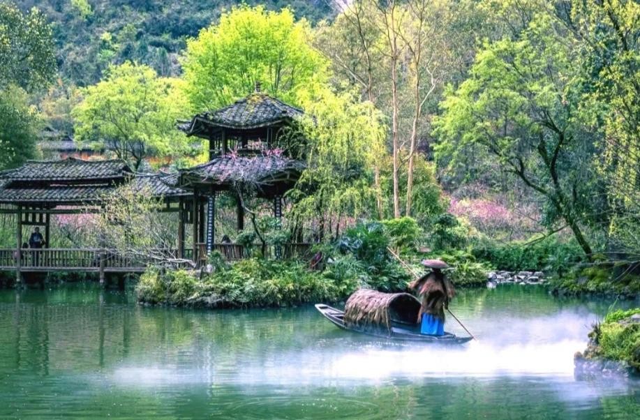 三、酉阳桃花源景区:这里是国家5A级旅游景区,以陶渊明笔下的《桃花源记》为原型,融入土家族、苗族文化,展现了古朴、自然的乡村风光,让人心生向往。