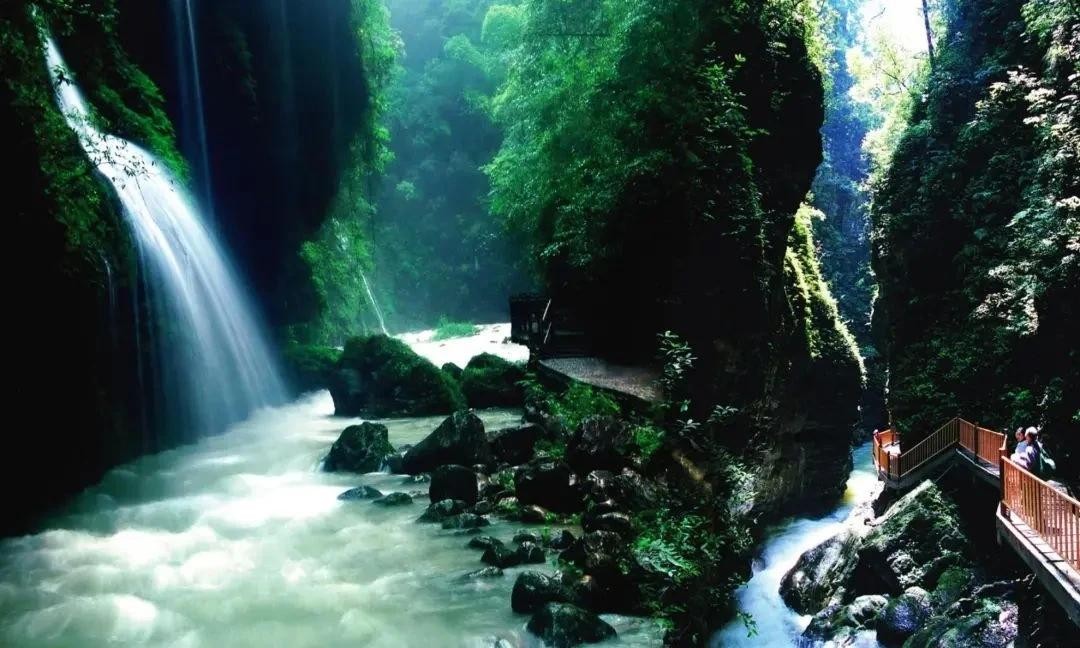 六、万盛黑山谷:这里是国家森林公园,以原始森林、瀑布群、溪流景观为主,空气清新,是休闲度假、探险猎奇的绝佳去处。